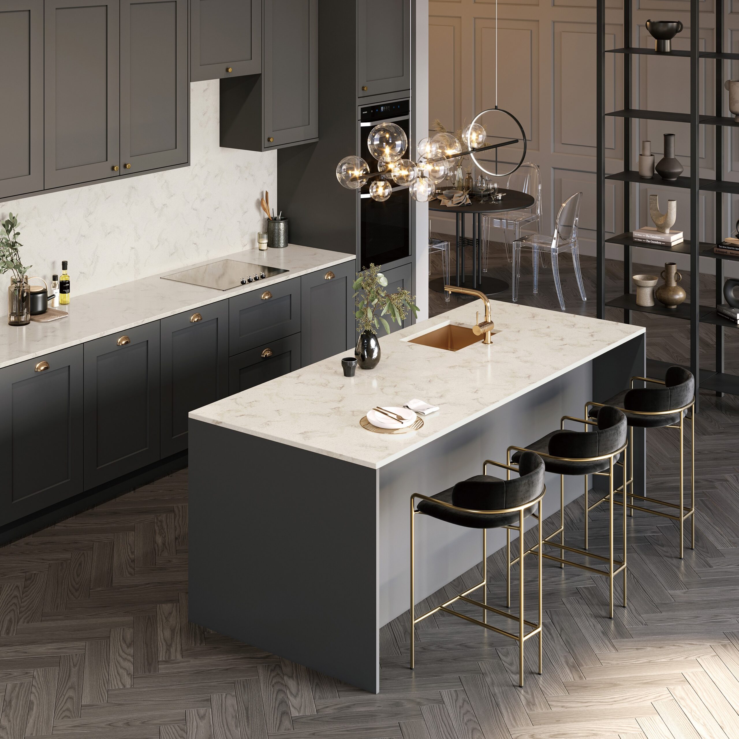 Красочные цвета и узоры из различных коллекции акрилового камня HI-MACS® сделают интерьеры более сияющими.