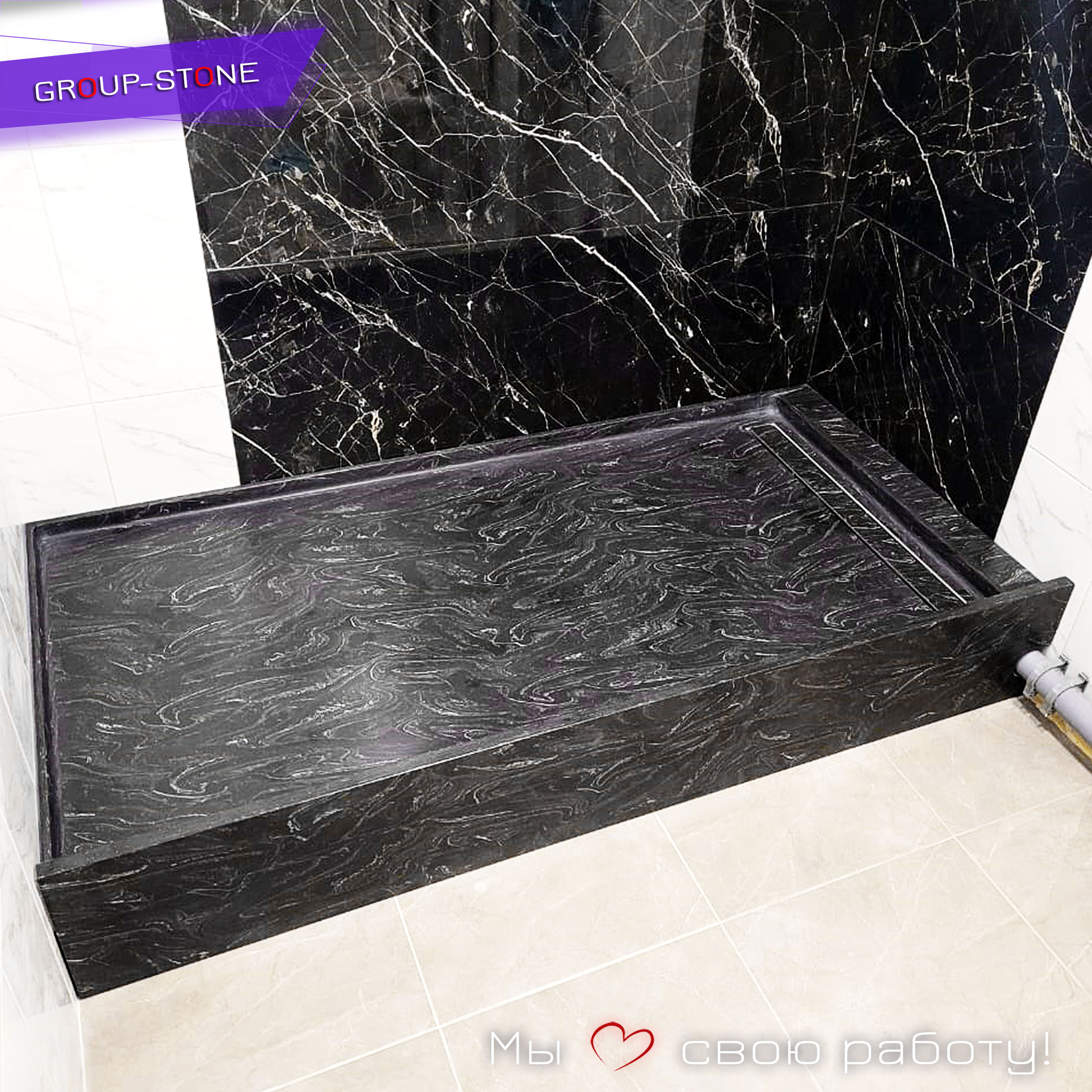- Секрет стиля: Поддон становится фокусом: выберите контрастный цвет для акцента или нейтральный для слияния с плиткой. В Group-Stone есть «Sandstone» для теплого, натурального вида или «Onyx Black» для драматичного шика.