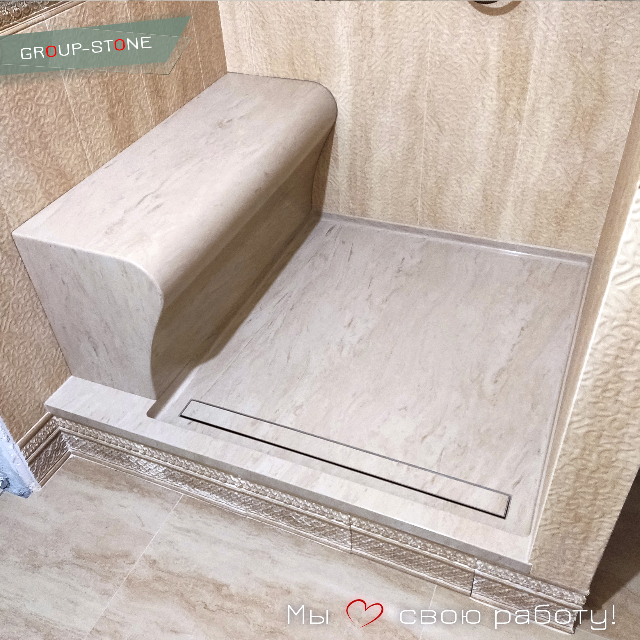 Ванная Комната Мечты: Душевые Поддоны с Скамьей из Искусственного Камня от Group-Stone для Роскошного Отдыха